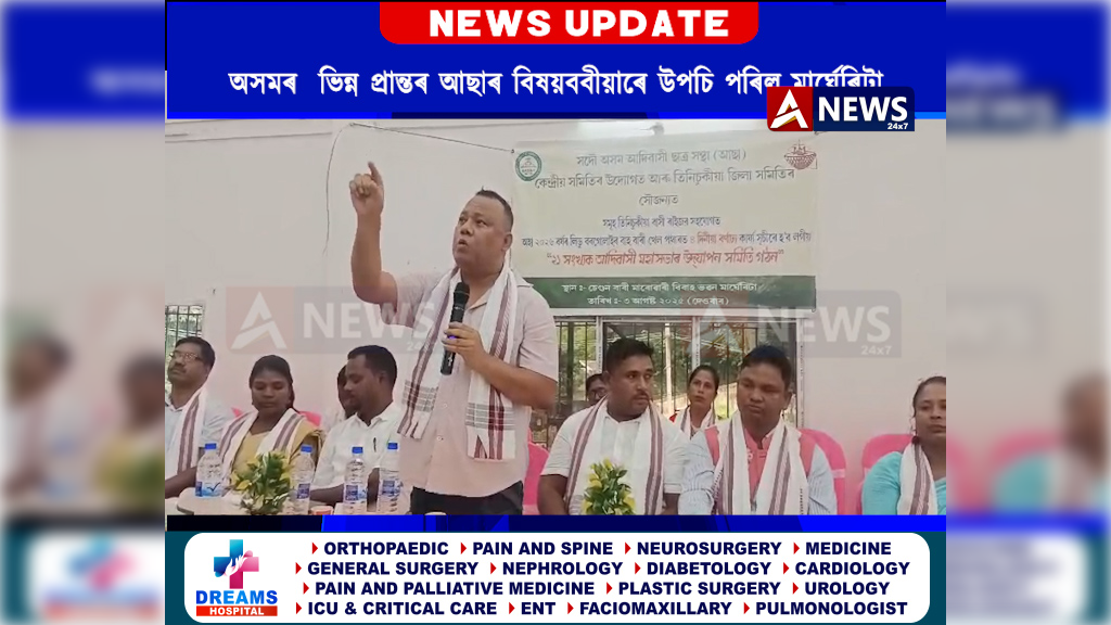 আজি সদৌ অসম আদিবাসী ছাত্ৰ সন্থা(আছা) কেন্দ্রীয় সমিতি উদ্যোগত আৰু তিনিচকীয়া জিলা সমিতিৰ আতিথ্যত এখন গুৰুত্বপূৰ্ণ সভা অনুষ্ঠিত কৰা হয়।