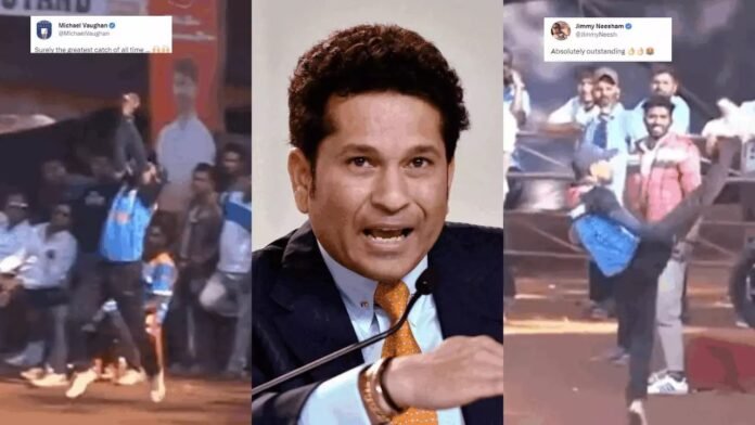 ডিজিটেল ডেস্ক, ANEWS24X7: ছ’চিয়েল মিডিয়াত ভাইৰেল হোৱা এটা ভিডিঅ’ত স্থানীয় ক্ৰিকেট খেলৰ এটা ক্লিপ দেখুওৱা হৈছে য’ত এজন ফিল্ডাৰে অত্যাশ্চৰ্য ধৰণে এটা ছয় সংৰক্ষণ কৰিছিল। ক্ৰিকেটাৰজনে ফুটবলখেলুৱৈজনক নিজৰ ভিতৰতে উলিয়াই দিছিল আৰু চাইকেল চলাই খেলপথাৰলৈ উভতি আহিছিল। শচীন তেণ্ডুলকাৰ ক্লিপটোৰ প্ৰতি প্ৰতিক্ৰিয়া প্ৰকাশ কৰা বহুতো ক্ৰিকেটাৰৰ মাজৰ এজন আছিল।