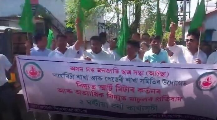 প্ৰতিবাদৰ অংশ হিচাপে মাৰ্ঘেৰিটা এপিডিচিএলৰ মহকুমা অভিযন্তাক এখন স্মাৰক পত্ৰ প্ৰদান কৰা হয়