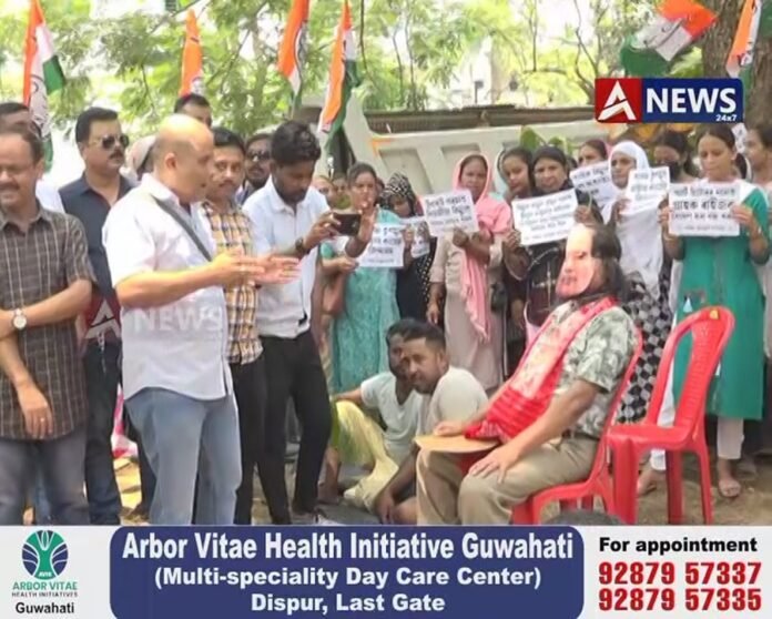 গুৱাহাটীৰ জয়ানগৰস্থ অসম তৃণমূল কংগ্ৰেছৰ কাৰ্যালয় চৌহদৰ কাষতে থকা এজোপা প্ৰকান্ড গছৰ তলত বহি প্ৰতিবাদ কৰে তৃণমূল কংগ্ৰেছৰ সভাপতি ৰিপুণ বৰাসহিতে অন্যান্যসকলে।
