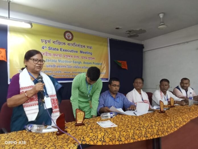 ভাৰত মাতা পূজনেৰে আৰম্ভ কায্যনিৰ্বাহক সভাত প্ৰতিখন জিলাৰ প্ৰতিনিধিয়ে বছৰৰ কৰ্ম খতিয়ান দাঙি ধৰে । শ্ৰমজীৱি জনতাৰ সুৰক্ষা অধিকাৰ নিশ্বিত কৰাৰ উদ্দেশ্যে ভাৰতীয় জনতা মজদুৰ সংঘই কাম কৰি আহিছে ।