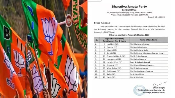 মিজোৰাম বিধানসভা নিৰ্বাচনৰ বিজেপিৰ প্ৰথমখন প্ৰাৰ্থীৰ তালিকা প্ৰকাশ