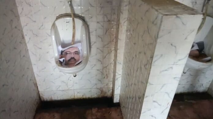 ছয়গাঁৱত প্ৰাক্তন আছু নেতা দীপাংক নাথ আৰু প্ৰকাশ দাসৰ ফটোত প্ৰস্ৰাৱ কৰি আছে ৰাজহুৱা প্ৰস্ৰাৱগাৰত