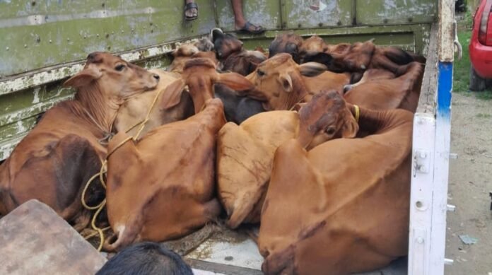 বলে’ৰ পিকআপ খনৰ ফলৰ কাৰ্টুনৰ তলৰ লুকুৱাই গৰু কেইটা লুকুৱাই আনিছিল চোৰাং বেপাৰী । চুবুৰীয়া ৰাজ্য পশ্চিম বংগৰ পৰা ভিতৰুৱা পথ হৈ ১৭ নং ৰাষ্ট্ৰীয় ঘাইপথেৰে গৌৰীপুৰ অভিমূখে গৈ আছিল বলে’ৰ পিকআপ খন । বাংলাদেশলৈ চোৰাং সৰবৰাহ কৰাৰ উদ্দেশ্যে নি থকা হৈছিল গৰু কেইটা ।