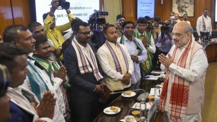 কেন্দ্ৰীয় গৃহ মন্ত্ৰী অমিত শ্বাহৰ উপস্থিতিত অসমৰ ৫ টা আদিবাসী উগ্ৰপন্থী গোটে স্বাক্ষৰিত কৰে শান্তি চুক্তি । শান্তি চুক্তিত বিৰচা কমাণ্ডো ফ’ৰ্চ (বিচিএফ), আদিবাসী পিপলছ আৰ্মি (এপিএ), অল আদিবাসী নেচনেল লিবাৰেচন আৰ্মি (আনালা), আদিবাসী কোবৰা মিলিটাৰী অৱ আছাম (এচিএমএ), সাঁওতালি টাইগাৰ ফ’ৰ্চ (এছটিএফ) আৰু বিচিএফ, এএনএলএ আৰু এচিএমএৰ এফ জি গোটে স্বাক্ষৰ কৰে ।কেন্দ্ৰীয় গৃহমন্ত্ৰী অমিত শ্বাহৰ উপস্থিতিত মুখ্যমন্ত্ৰী হিমন্ত বিশ্ব শৰ্মাৰ সৈতে এই শান্তি চুক্তিত স্বাক্ষৰ কৰে বিদ্ৰোহী সংগঠন কেইটাই ।