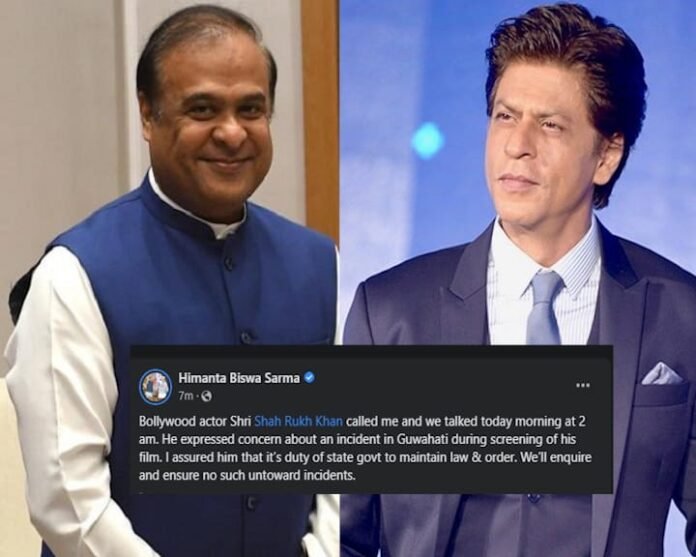 তাৰ পাছতেই শ্বাহৰুখ খানে ফোন কৰিলে মুখ্যমন্ত্ৰী হিমন্ত বিশ্ব শৰ্মাক। সামাজিক মাধ্যম যোগে এই কথা প্ৰকাশ কৰিলে মুখ্যমন্ত্ৰী হিমন্ত বিশ্ব শৰ্মাই।