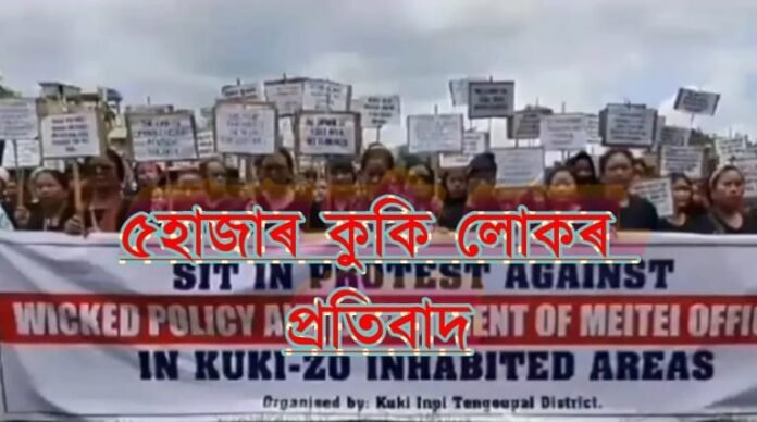 ডিজিটেল ডেস্ক,২ছেপ্তেম্বৰ: শনিবাৰে মণিপুৰৰ মৰেহৰ গালংগাম লেনটৌলত কুকি-চিৰিয়াখানা সম্প্ৰদায়ৰ ৪ হাজাৰৰো অধিক লোকে ধৰ্ণা কাৰ্যসূচী ৰূপায়ণ কৰে, য’ত বেছিভাগেই মহিলা।মণিপুৰত চলি থকা হিংসাত্মক পৰিস্থিতিৰ ৰাজনৈতিক সমাধানৰ দাবীত( Kuki Inpi demands political solution) টেংগনৌপাল জিলাৰ কুকি ইনপিৰ উদ্যোগত এই প্ৰতিবাদী কাৰ্যসূচী ৰূপায়ন কৰে।