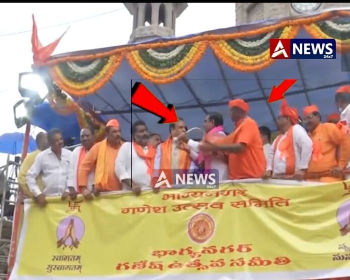 ডিজিটেল ডেস্ক ANEWS24X7: হাইদৰাবাদত অসমৰ মুখ্যমন্ত্ৰী হিমন্ত বিশ্ব শৰ্মাৰ সভাত অথন্তৰ ৷ গণেশ চতুৰ্থীৰ এক অনুষ্ঠানত অংশগ্ৰহণ কৰাৰ সময়ত সংঘটিত হৈছে এই ঘটনা ৷