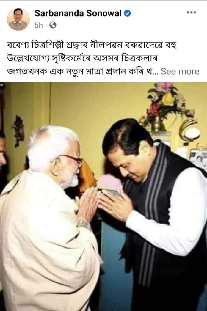 যশস্বী চিত্ৰশিল্পী নীলপৱন বৰুৱাৰ বিয়োগত শোক প্ৰকাশ কেন্দ্ৰীয় মন্ত্ৰী সৰ্বানন্দ সোণোৱালৰ