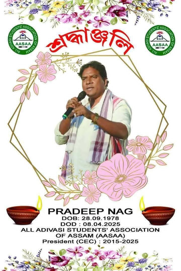 আজি ৮এপ্ৰিল। এবছৰৰ পূৰ্বে আজিৰ দিনটোতে হেৰাই গৈছিল এক বলিষ্ঠ কণ্ঠ। আজি আদিবাসী জাতীয় নায়ক প্ৰদীপ নাগৰ প্ৰথম মৃত্যুৱাৰ্ষিকী। আজিৰ দিনটোত জাতীয় নায়কগৰাকীক শ্ৰদ্ধাৰে স্মৰণ কৰিছে সমগ্ৰ অসমৰ আদিবাসী ৰাইজৰ লগতে বিভিন্ন জাতীয় দল-সংগঠনে।জাতীয় নায়ক প্ৰদীপ নাগে আদিবাসী সমাজৰ অধিকাৰ, মৰ্যাদা আৰু উন্নয়নৰ বাবে নিজৰ জীৱন উৎসৰ্গা কৰিছিল। তেখেতে সদায় সমাজৰ কল্যাণৰ বাবে আগবঢ়ি আহিছিল আৰু আদিবাসী জনগোষ্ঠীৰ কণ্ঠস্বৰ হিচাপে সাহসেৰে অন্যায়ৰ বিৰুদ্ধে মাত মাতিছিল। তেখেতৰ আদৰ্শ, সাহস আৰু নেতৃত্বই বহু লোকক সমাজৰ বাবে কাম কৰিবলৈ প্ৰেৰণা যোগাইছে।