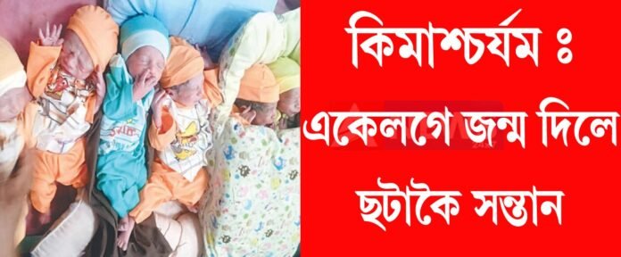 নিউজ ডেক্স, ২৫ এপ্ৰিলঃ এগৰাকী মহিলাই একেলগে জন্ম দিলে ছটাকৈ সন্তান। এই ঘটনা সংঘটিত হৈছে পাকিস্তানত। বাতৰি অনুসৰি পাকিস্তানৰ জিনাত ৱাহিদাই যোৱা অলপতে চাৰিজন পুত্ৰ আৰু দুগৰাকী কন্যা সন্তান জন্ম দিয়ে। এঘণ্টাৰ ভিতৰতে জন্ম দিলে ছটাকৈ সন্তান। এনেদৰে ছটাকৈ পুত্ৰ-কন্যা সন্তান পাই আনন্দত আত্মহাৰা ৱাহিদাৰ পৰিয়াল।