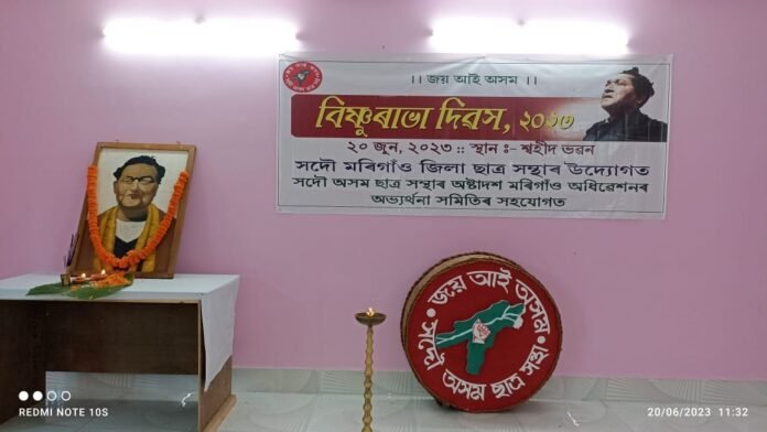 অংকুৰ ডেকা, মৰিগাঁও: আজি সদৌ মৰিগাঁও জিলা ছাত্ৰ সন্থাৰ উদ্যোগত আৰু আছুৰ অষ্টাদশ মৰিগাঁও অধিবেশনৰ অভ্যৰ্থনা সমিতিৰ সহোযগত জিলা আছুৰ শ্বহীদ ভৱনত আয়োজন কৰা হয় বিষ্ণু ৰাভা দিৱস । জিলা ছাত্ৰ সন্থাৰ সাধাৰণ সম্পাদক ৰূপজ্যোতি মেধিয়ে আত ধৰা অনুষ্ঠানৰ ৰাভা দিৱৰ প্ৰতিচ্ছবিত বন্তি প্ৰজ্বলনৰে শুভাৰম্ভণি কৰে জিলা ছাত্ৰ সন্থাৰ সভাপতি দিপুল কুমাৰ নাথ আৰু মূল বন্তি প্ৰজ্বলন কৰে আদৰণি সমিতিৰ সভাপতি মিলেশ্বৰ পাতৰে, মাল্যাৰ্পণ কৰে আদৰণি সমিতিৰ কাৰ্যকৰী সভাপতি অতনু শৰ্মাই ৷