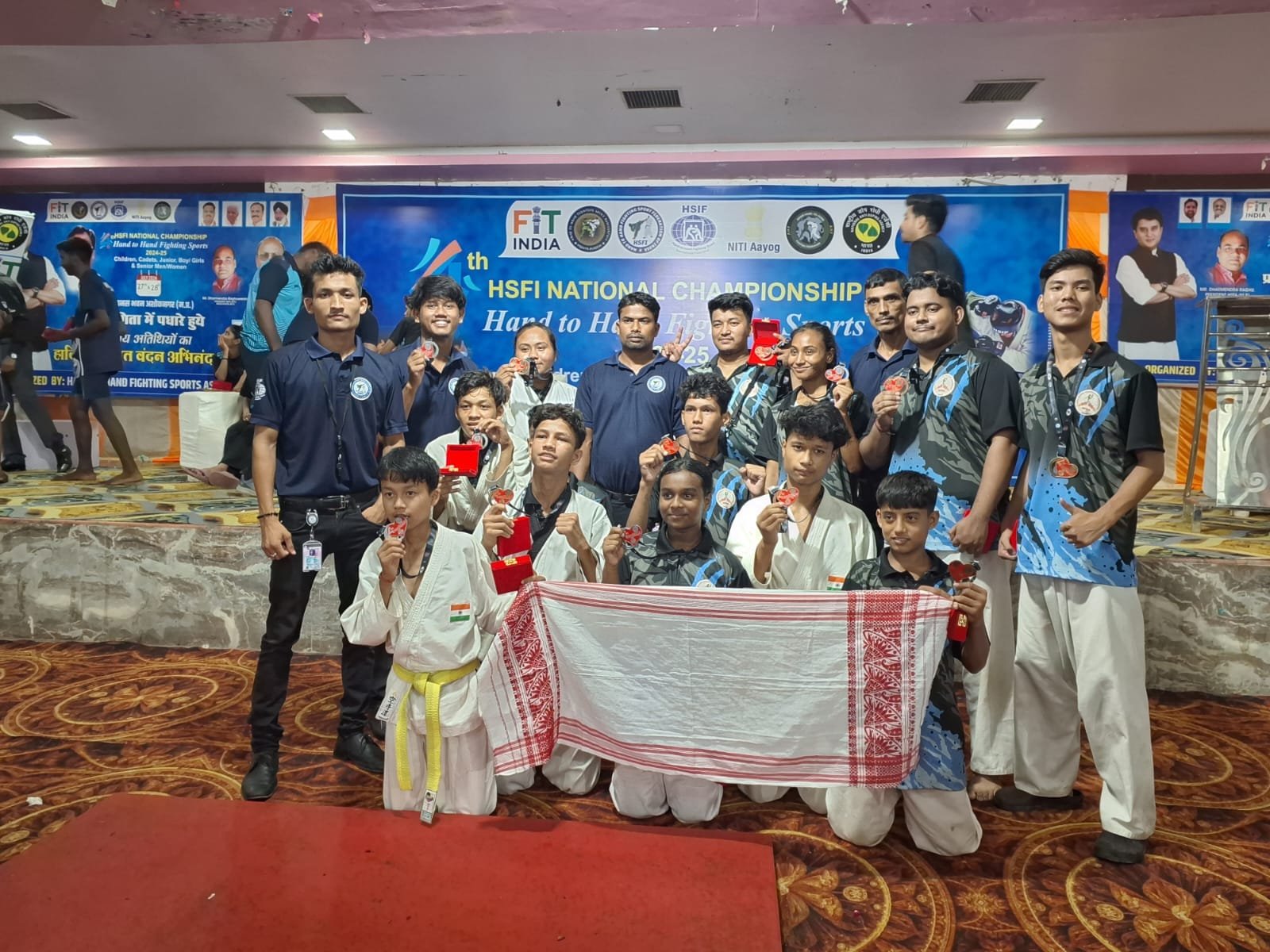 মালিগাঁও. ২৯জুলাই: 27th and 28th July 2024 পৰা মধ্য প্ৰদেশৰ, অশোক নগৰত অনুষ্ঠিত হোৱা 4th National Hand to Hand Fighting Sport Championship 2024 অত অসমৰ 19 জন খেলুৱৈয়ে প্ৰথম বাৰলৈ অংশগ্ৰহণ কৰি 5 Gold, 5 Silver and 3 Bronze অৰ পদক অৰ্জন কৰি অসমলৈ গৌৰৱ কঢ়িয়াই আনিবলৈ সক্ষম হয় ।
