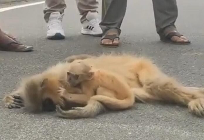 ইফালে আকৌ কেঁচুৱা বান্দৰটোৱে মাকক জগাই তুলিবলৈ চেষ্টা কৰোঁতে চিঞৰি থকাও দেখা গৈছিল। তেওঁলোকক কেইবাজনো মানুহে আগুৰি থকা দেখা গৈছিল। এখন দ্ৰুতবেগী বাহনৰ খুন্দাত মাতৃ বান্দৰৰ মৃত্যু হৈছিল। মৃতদেহটোৰ পৰা এটা তেজৰ সোঁত ওলাই অহা দেখা গৈছিল।